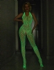 H3628, the unconventional glow-in-the-dark body stocking, is knitted with premium nylon and ammonia blended yarns for a second-skin fit with superior elasticity. The innovative implanted glow-in-the-dark material creates a dreamy halo in ambiguous light, making every turn a magical attraction. At the same time, the necklace design is fashionable and personalized, highlighting the line of the collarbone, adding charm, and easily creating an eye-catching look.