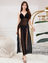 Product Name Black Sexy Mesh Lace Long Split Nightgown
