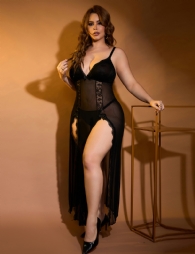 Home > Wholesale Plus Size Lingerie > Black Sexy Mesh Lace Long Split Nightgown