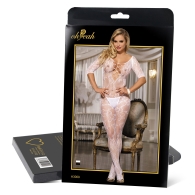 Standard Product Name: Available in black and white, made from high-elasticity nylon yarn, fishnet design, cross hollow in the front, patterned, sizes M/XL, sexy long-sleeve bodysock.