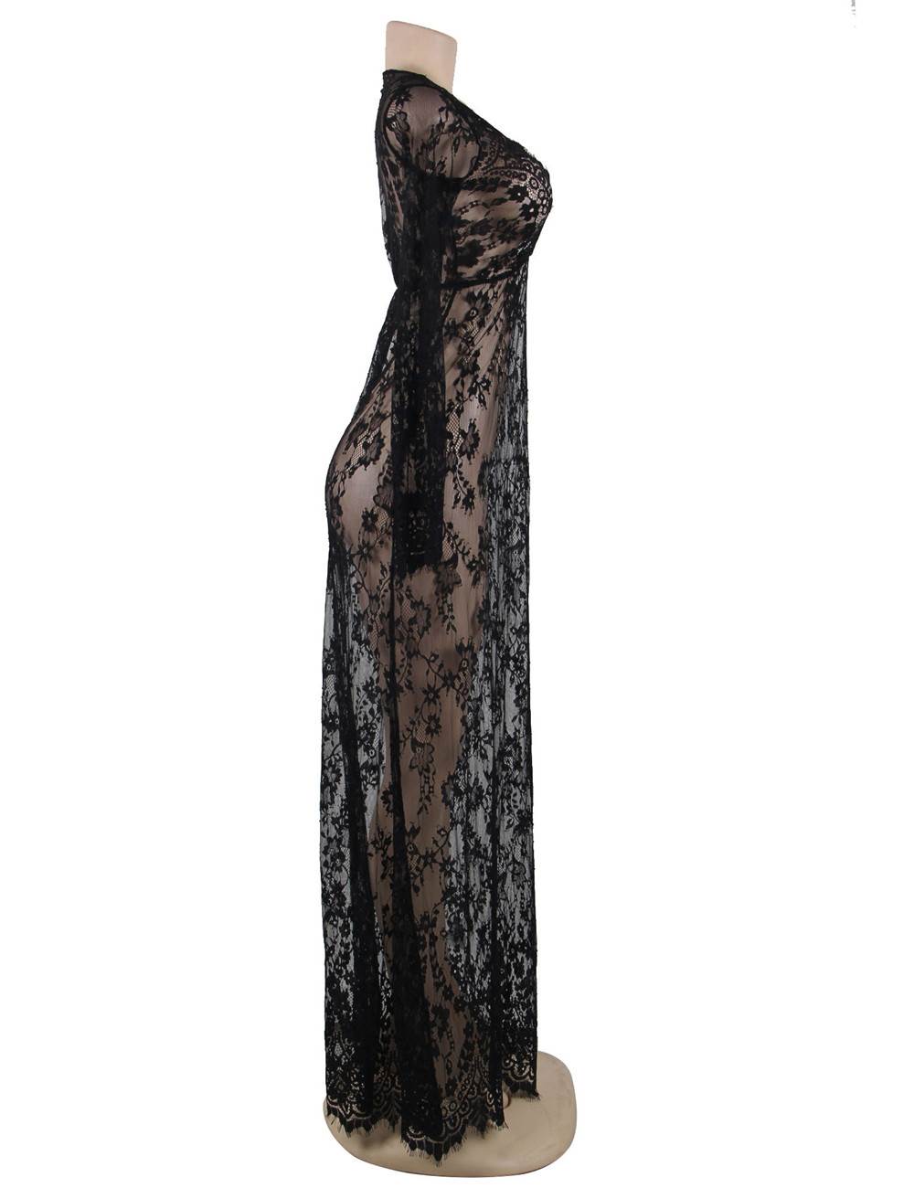 Product Name Sexy See-through V Neck Long Black Nightdress With Thong