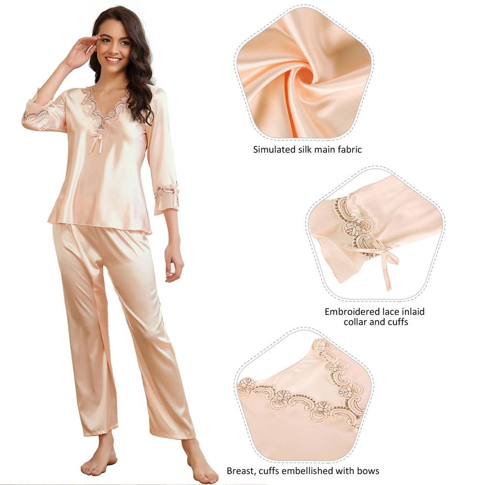 Introducing the latest addition to OhYeah Company’s collection - the R80883 Pajamas & Sleepwear. This product is designed to provide you with the ultimate comfort and style for your daily home wardrobe. With its unique features, it stands out from the rest. One of the key features of this product is the high-quality imitation silk material used. This fabric provides a luxurious and comfortable feel that is unmatched by any other material. The loose and relaxed fit of the pajamas is perfect for lounging around the house, and the bright and vibrant colors are sure to lift your mood. The R80883 pajamas also feature intricate embroidery and lace detailing around the neckline and cuffs, adding a touch of elegance and sophistication to the overall design. The bows on the chest and cuffs add a playful and cute touch, making it suitable for young girls and women alike. The classic design of the long-sleeved top and pants combination is timeless, making it a perfect addition to your wardrobe. This two-piece pajama set is available in five different colors - red, blue, pink, apricot, and purple - ensuring that you can find the perfect color to match your personal style. The sizes range from S to 2XL, making it easy for anyone to find the perfect fit. In summary, the R80883 pajamas from OhYeah Company are the perfect combination of comfort, style, and elegance. Whether you’re lounging around the house or getting ready for bed, these pajamas are sure to make you feel relaxed and comfortable. So why wait? Get your hands on this classic two-piece pajama set today and experience the ultimate in home comfort!