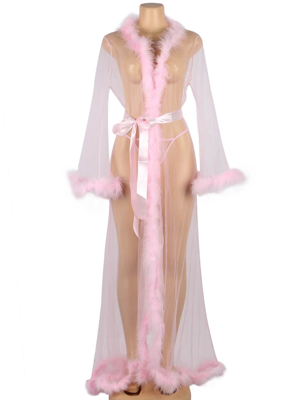 Product Name Sexy Plush Edging Mesh Robe Pink With Belt