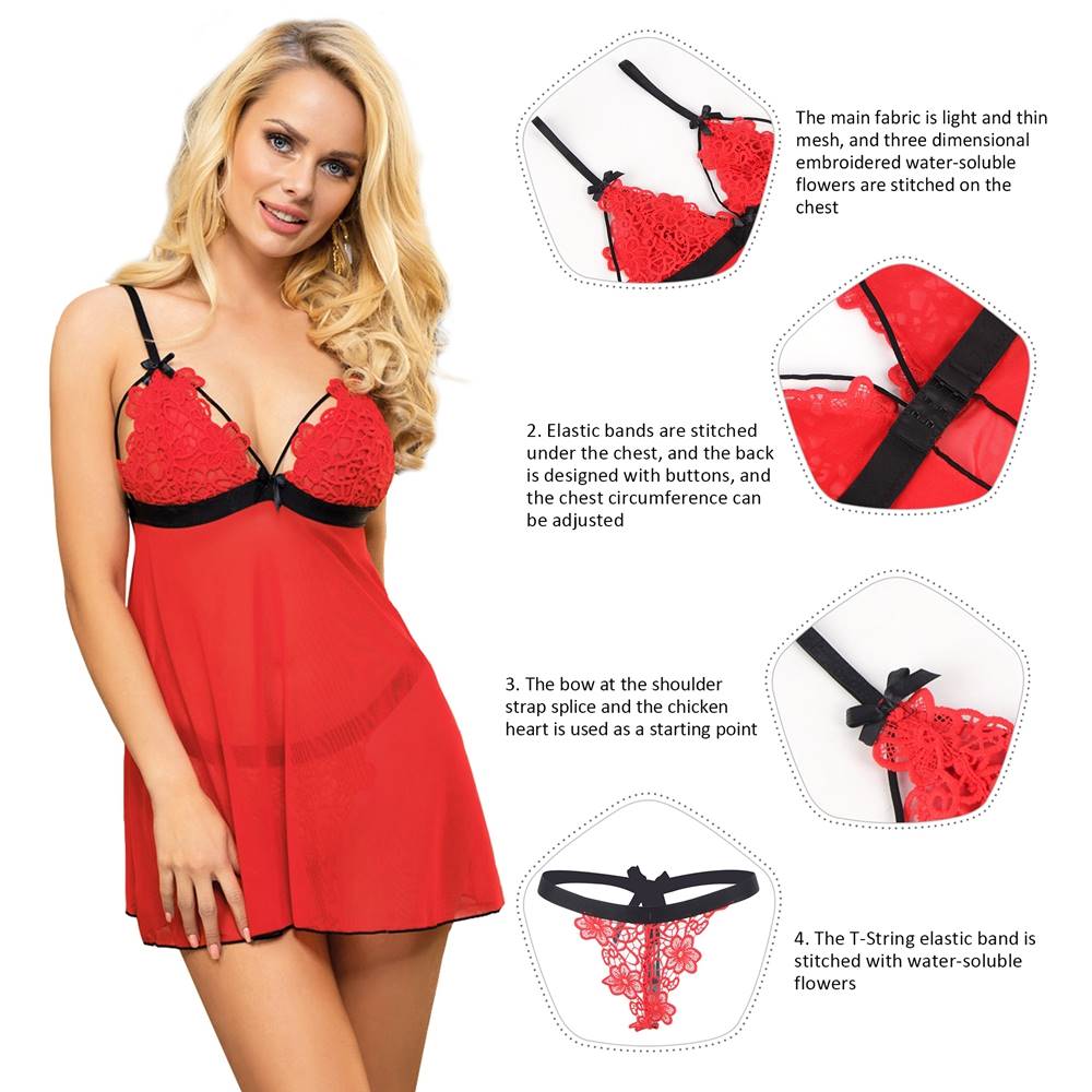 Introducing the latest addition to the ohyeah lingerie collection, the R80926-2P. This lingerie piece is designed with a range of innovative features that are guaranteed to make you look and feel beautiful. Below are some of the product’s key selling points. The R80926-2P is made from a lightweight and breathable mesh material, ensuring that you stay comfortable all day long. The delicate mesh is complemented by intricate 3D embroidery with water-soluble flowers on the chest, giving the lingerie piece a sophisticated and elegant look. The embroidery adds a textural element to the product, making it stand out from other lingerie pieces. The product features an adjustable elastic band under the chest, with a back buckle design that allows you to adjust the bust circumference to your liking. The elastic band is designed to fit a range of sizes and body shapes, making it suitable for plus size lingerie too. The back buckle design is also convenient and easy to use, enabling you to quickly adjust the fit as needed. The shoulder straps of R80926-2P are designed with a playful and fun butterfly bow, which adds a touch of whimsy to the lingerie piece. The bow serves as a decorative element, drawing attention to the neckline and creating a focal point for the eye. Additionally, the shoulder straps are adjustable, allowing you to customize the fit to your liking. The product also boasts a distinctive elastic band design with water-soluble flowers on the thong, which adds a unique and stylish element to the lingerie piece. The thong is designed with a comfortable and flattering fit, ensuring that you feel confident and sexy. The R80926-2P is available in two colors, black and red, both of which are designed to suit a range of skin tones and personal preferences. The product is available in sizes from S to 5XL plus size lingerie, ensuring that women of all sizes can enjoy the ultimate in lingerie luxury. In summary, the R80926-2P is an exceptional lingerie piece suitable for any occasion. Its lightweight and breathable mesh material, adjustable elastic band and shoulder straps, playful butterfly bow design, and unique water-soluble flower thong are just some of the features that make this product a must-have. Don’t hesitate, order your R80926-2P today for the ultimate lingerie experience.