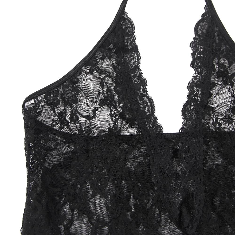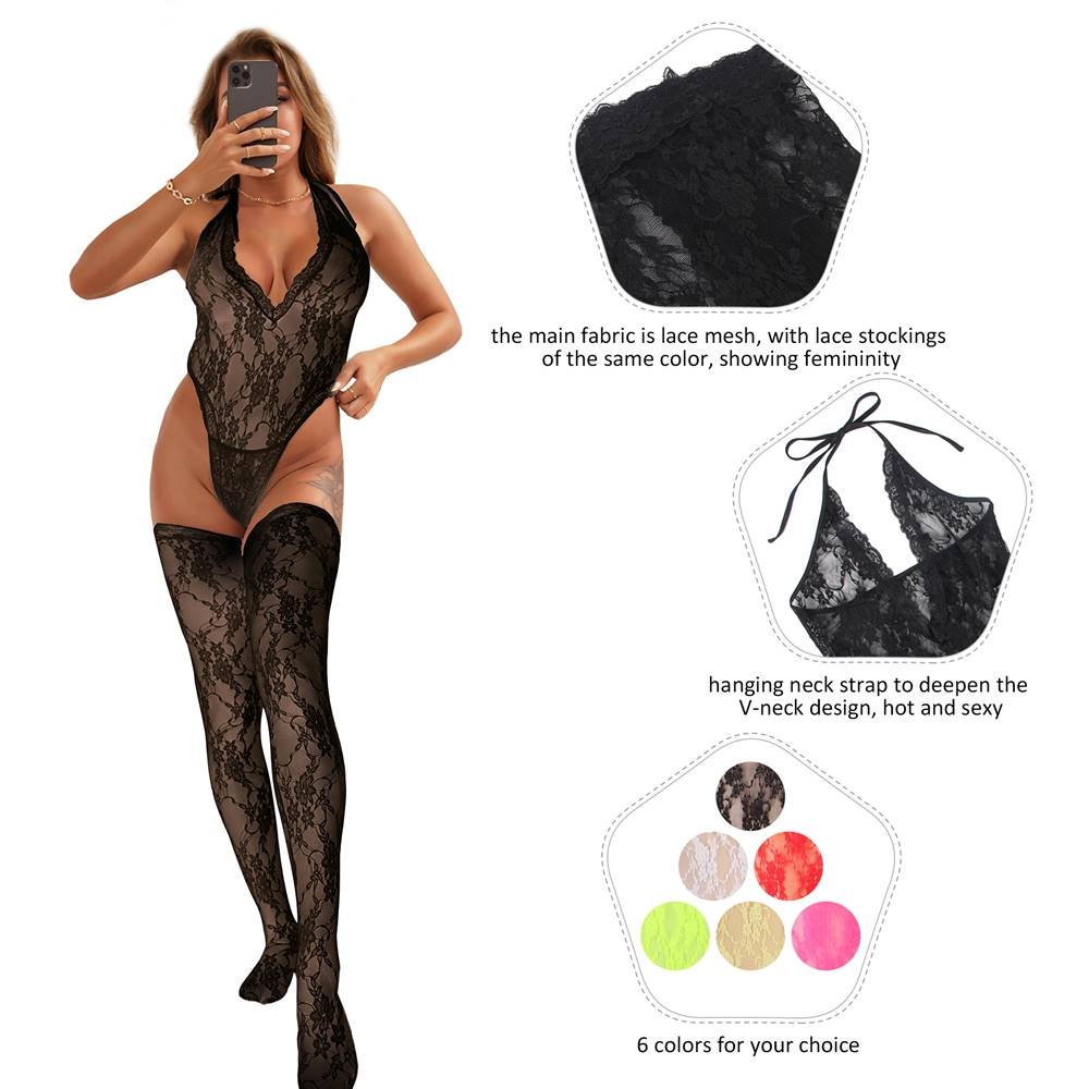 Product Name Sexy Halter V Neckline Black Lace Plus Size Teddy with the Stocking