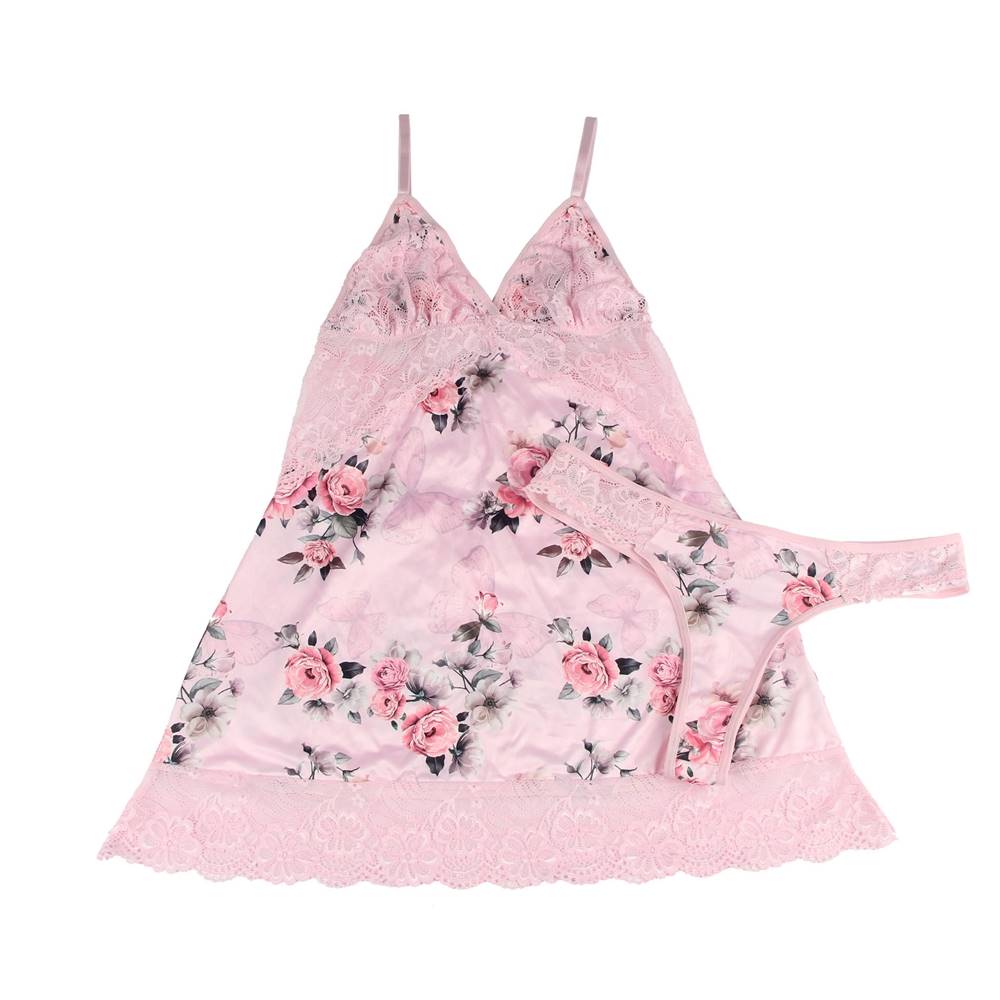 Home > Wholesale Plus Size Lingerie > Plus Size Floral Print Lace-up Babydoll Without Underwire