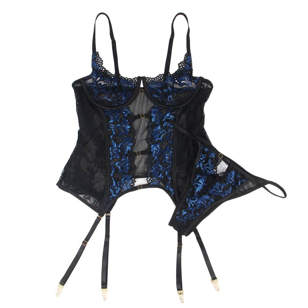Product Name Sexy Lace Stitching Gartered Lingerie Set With Underwire