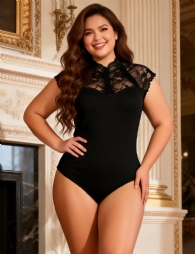 Product Name One-piece Sleeveless Open Crotch Black Lace Stitching Fashion Bodysuit