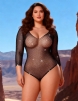 Home > Plus Size BodyStockings Wholesale > Plus Size Black Long Sleeve Fishnet Off-the-shoulder Sparkle Bodysuit