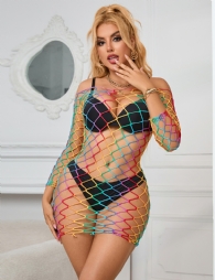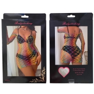 Introducing the H3519 Bodystocking from ohyeah, a unique and stylish piece of lingerie that is designed to enhance your curves and make you feel confident and beautiful. Made with high-quality nylon and spandex material, this bodystocking is both comfortable and form-fitting, ensuring that it hugs your body in all the right places. One of the standout features of the H3519 is its stunning rainbow color, which is sure to turn heads and make you feel like a fashion icon. The diamond-shaped mesh pattern adds an extra touch of glamour and personality to the bodystocking, making it perfect for special occasions or intimate moments. The one-shoulder design of the H3519 is another unique feature that sets it apart from other bodystockings on the market. This design highlights your shoulders and neck, adding a touch of elegance and style to the overall look of the lingerie. The backless design of the H3519 is both sexy and sophisticated, making you look and feel even more alluring. The form-fitting shape of the bodystocking accentuates your curves, while the diamond-shaped mesh and one-shoulder design add a touch of glamor and style. Whether you are a size M or XL, the H3519 is designed to fit all body types, including plus size women. This makes it a versatile and inclusive piece of lingerie that is perfect for women of all shapes and sizes. In conclusion, the H3519 Bodystocking from ohyeah is a must-have addition to any lingerie collection. Its unique features, including the rainbow color, diamond-shaped mesh pattern, one-shoulder design, and backless style, make it a standout piece that is sure to leave you feeling confident, sexy, and beautiful. Don’t miss out on this opportunity to own one today!