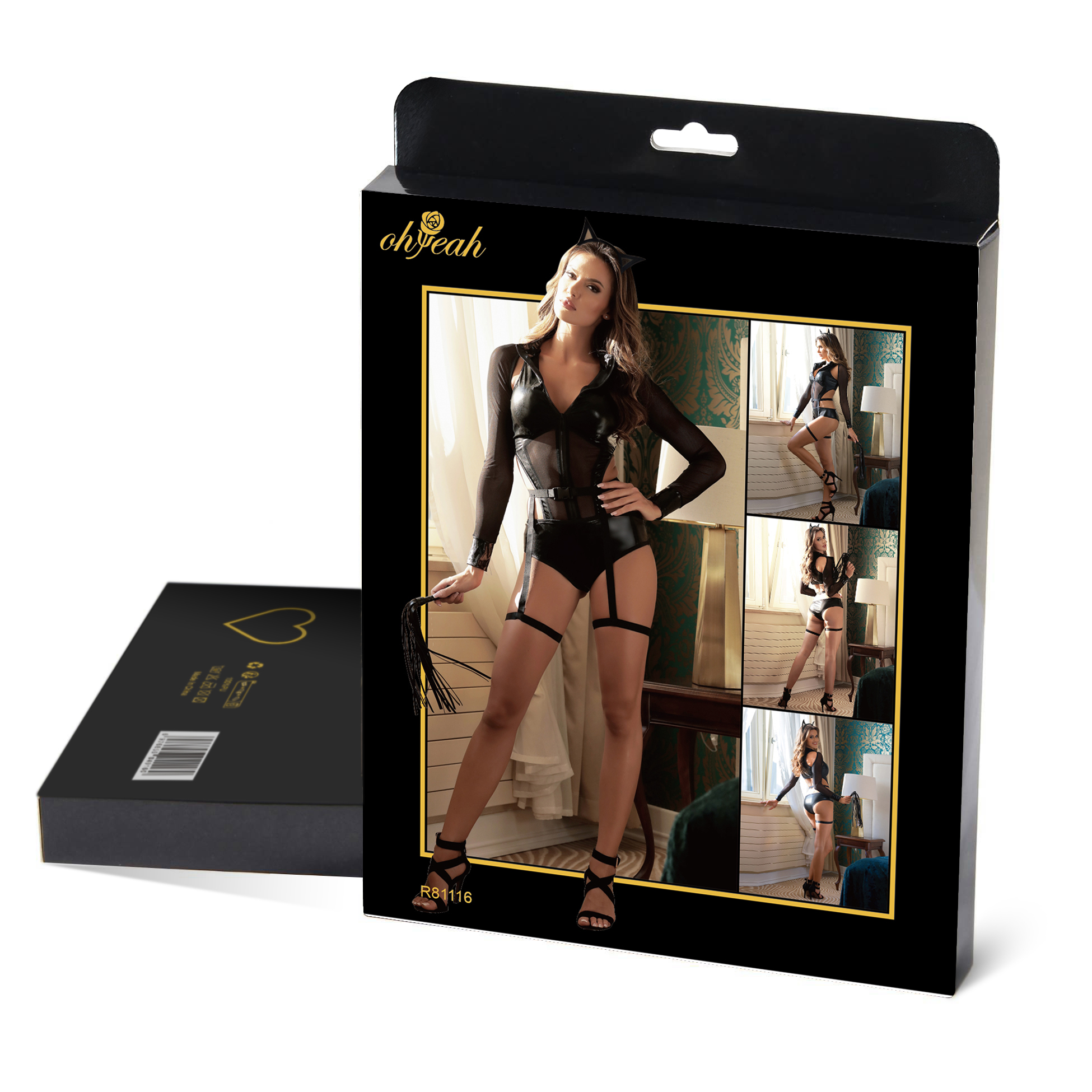 Product Name Black Zipper Front Long Sleeve Leather Devil Sexy Costume
