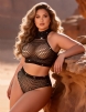 Home > Plus Size BodyStockings Wholesale > Black Two Piece Fishnet Rhinestone See Through Top and Shorts Set