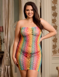 Home > Plus Size BodyStockings Wholesale > Rainbow Colorful Off Shoulder Fishnet Bodystocking