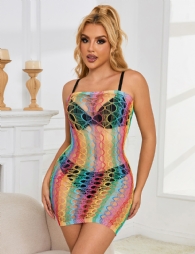 Product Name Rainbow Colorful Off Shoulder Fishnet Bodystocking