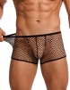Standard product name: Available in black, white, and yellow colors, fishnet fabric, front U-shaped pouch design, M-2XL, men`s fishnet sexy boxer shorts.