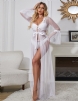 Standard product name: White, mesh fabric, neckline and sleeves with three-dimensional embroidered lace, nine-button design in the front, long open front with matching belt, comes with thong, plus sizes M-5XL, sexy long-sleeved robe.