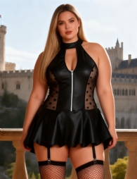 Home > Wholesale Leather Lingerie > Black Halter PU Leather Lace Sexy Garter Lingerie
