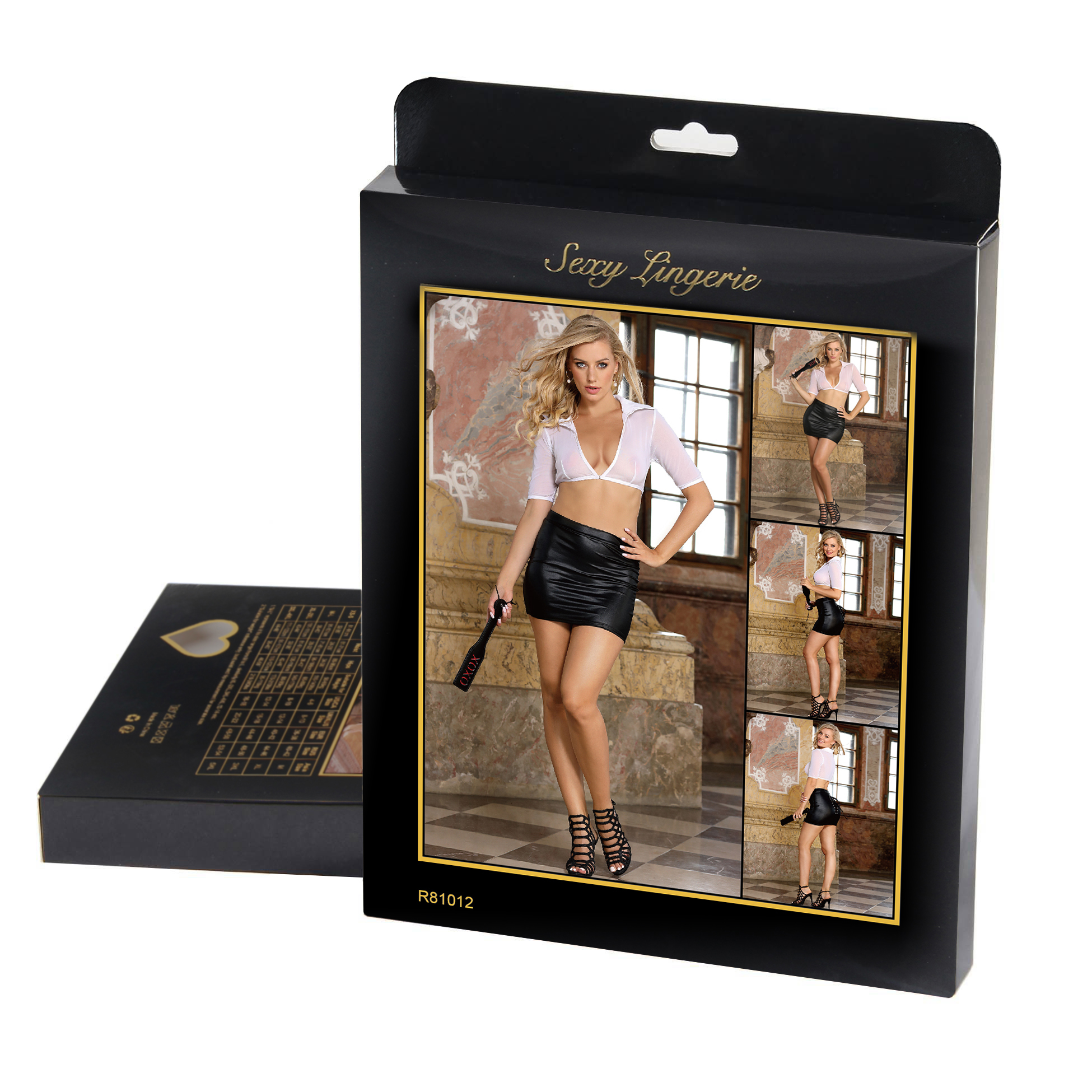 Home > > Sexy White Half Sleeve Shirt Black Leather Skirt Secretary Costume