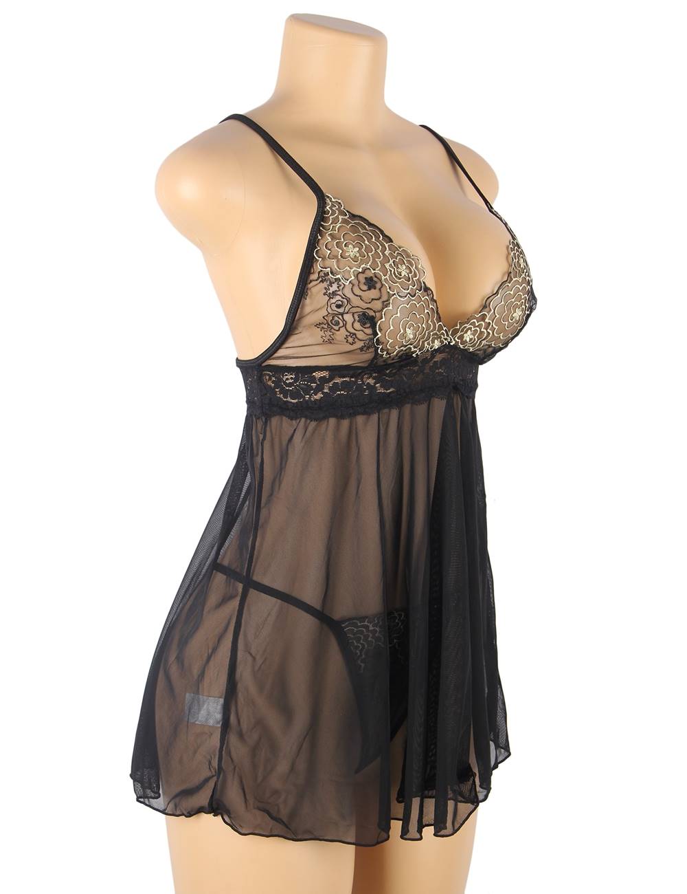 Product Name Plue Size Elegant Black See-through Lace Exquisite Embroidery Sexy Babydoll