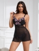 Standard Product Name:Black, light mesh, floral embroidery, chest lining, with steel ring, back buckle design, adjustable bust, adjustable straps, many embellished bows, to the side + back hollowed out small details, with T trousers, cotton gear, S-2XL size, women's sexy slingback nightgowns