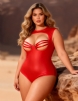 Standard product name: Black and red in 2 colors, PU leather, round neck, hollowed-out chest, spliced adjustable elastic straps, back zipper design, M-3XL plus size, sexy bodysuit leather outfit;