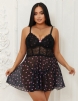 Product Name Black Sexy Heart Printed Lace Mesh Push Up Nightdress