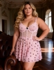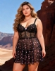 Home > Wholesale Plus Size Lingerie > Black Sexy Heart Printed Lace Mesh Push Up Nightdress
