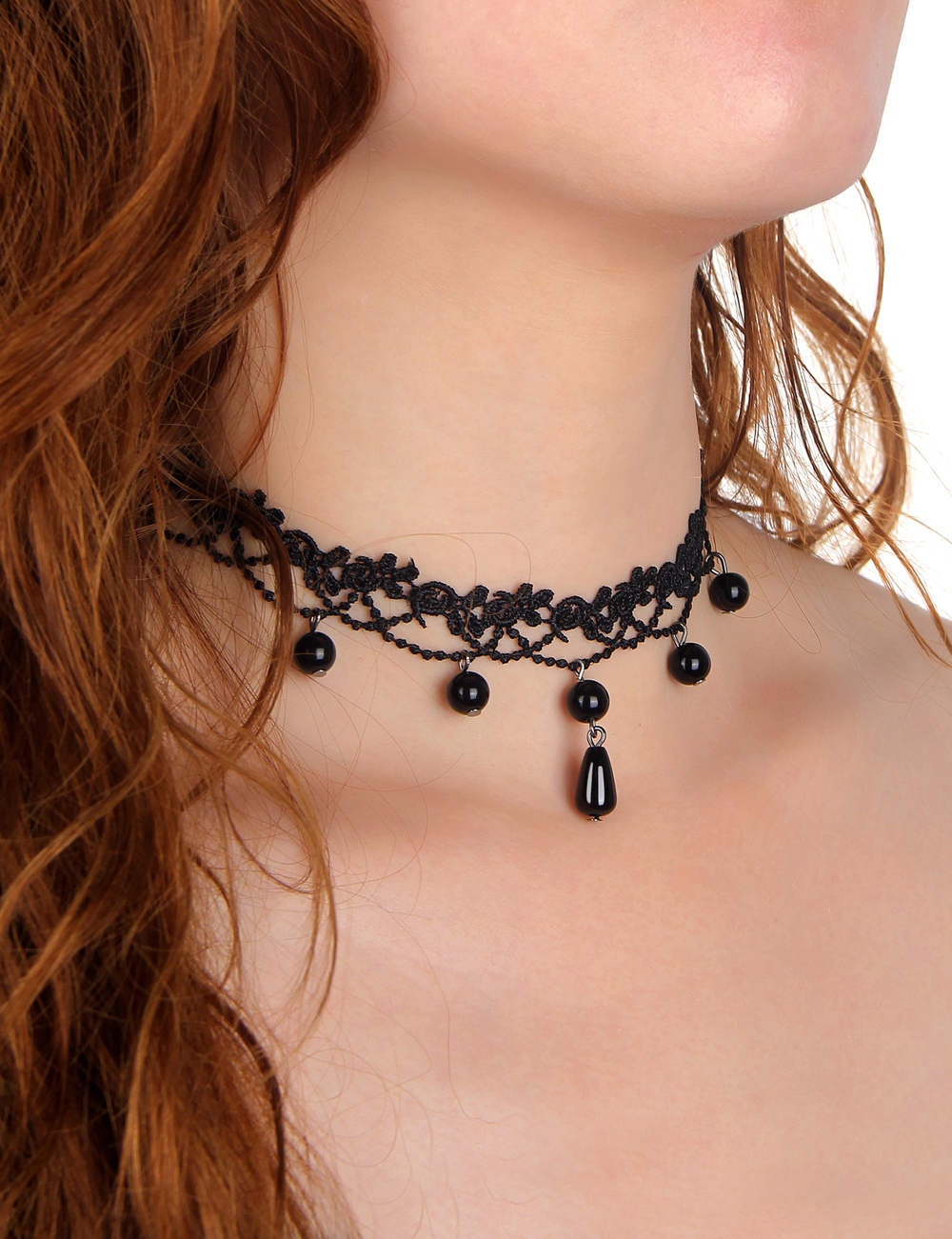 Home > Leg Ring & Gloves > Black Sexy Lace Floral Bead Pendant Necklace