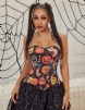 Product Name 15 Pieces Plastic Bones Black Sexy Pumpkin Print Zipper Lace Up Halloween Corset