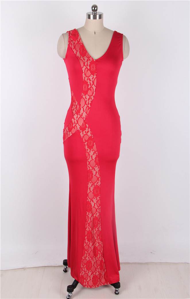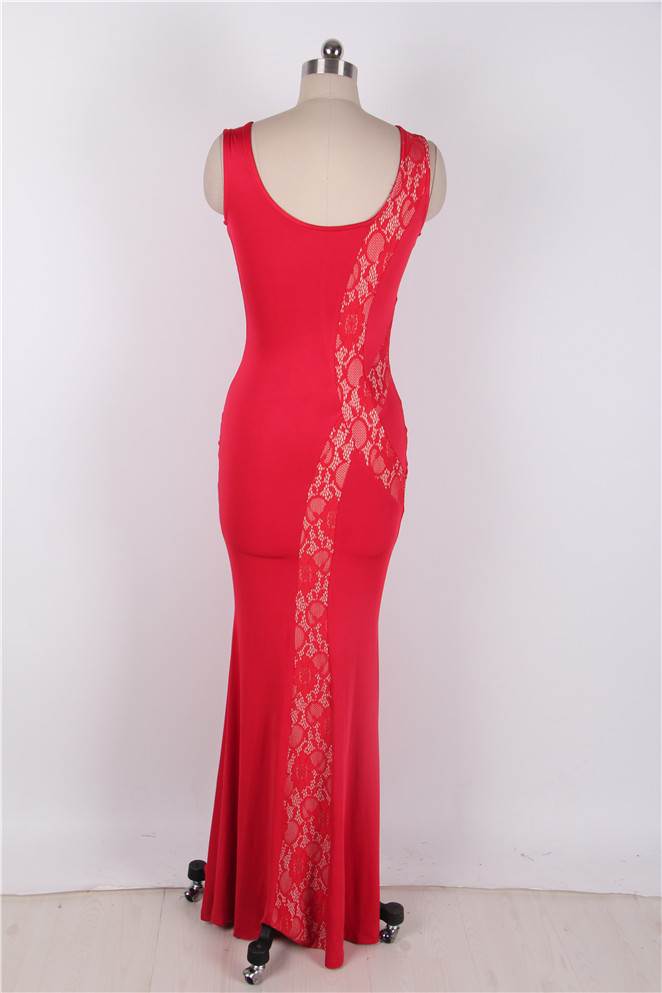 Product Name Plus Size Red Lace Panel V-Neck Maxi Dress