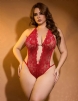 Home > Plus Size Teddy Supplier > Red Lace Sexy V Neck Halter Backless Open Crotch Teddy Lingerie