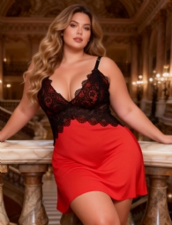 Home > Wholesale Plus Size Lingerie > V-neck Red Lace Sexy Nightdress