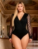 Home > Plus Size Teddy Supplier > Black Sexy Deep V Neck Polka Dot Mesh Long Sleeves Open Crotch Bodysuit