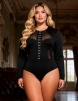 Home > Plus Size Teddy Supplier > Black Sexy Swim Cloth And Mesh Long Sleeves Open Crotch Bodysuit