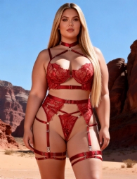 Home > Plus Size Bra Wholesale > Red Sexy Halter Neck Embroidery Floral Lace Lingerie Set With Garters
