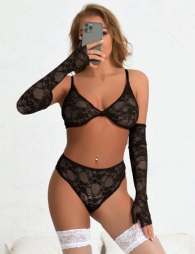 Home > Plus Size Bra Wholesale > See-through sexy women‘s full lace high stretch bra panty set with sleeves