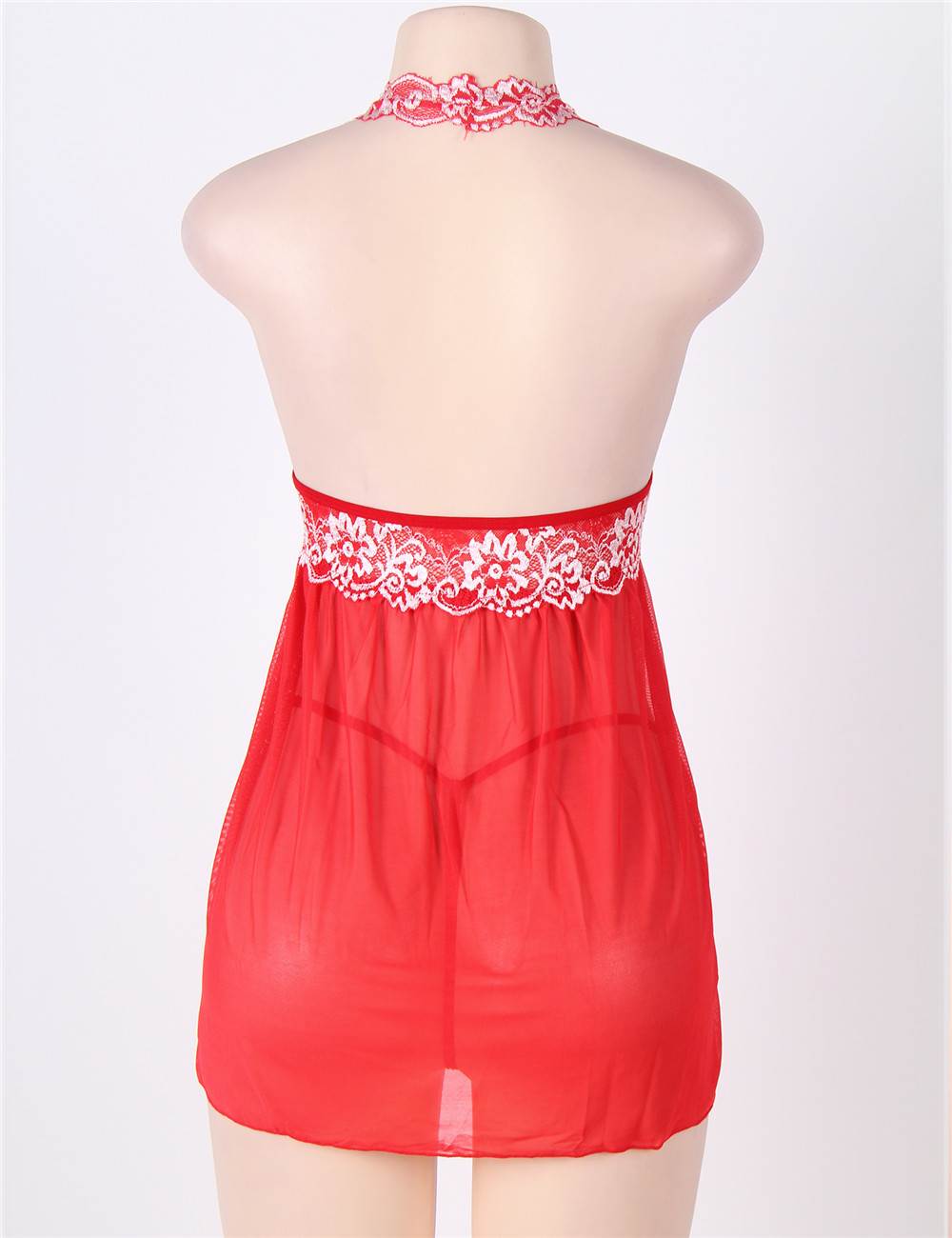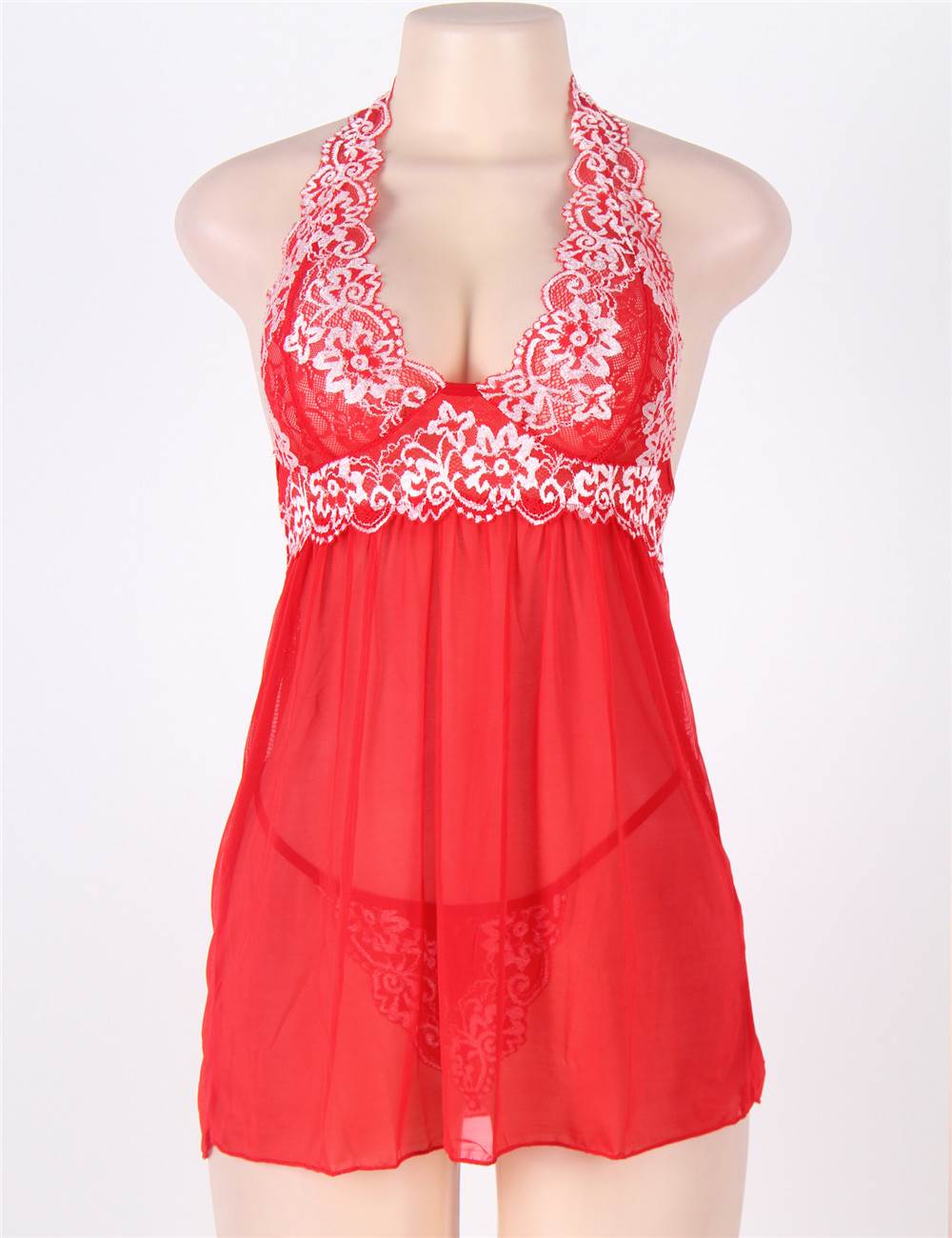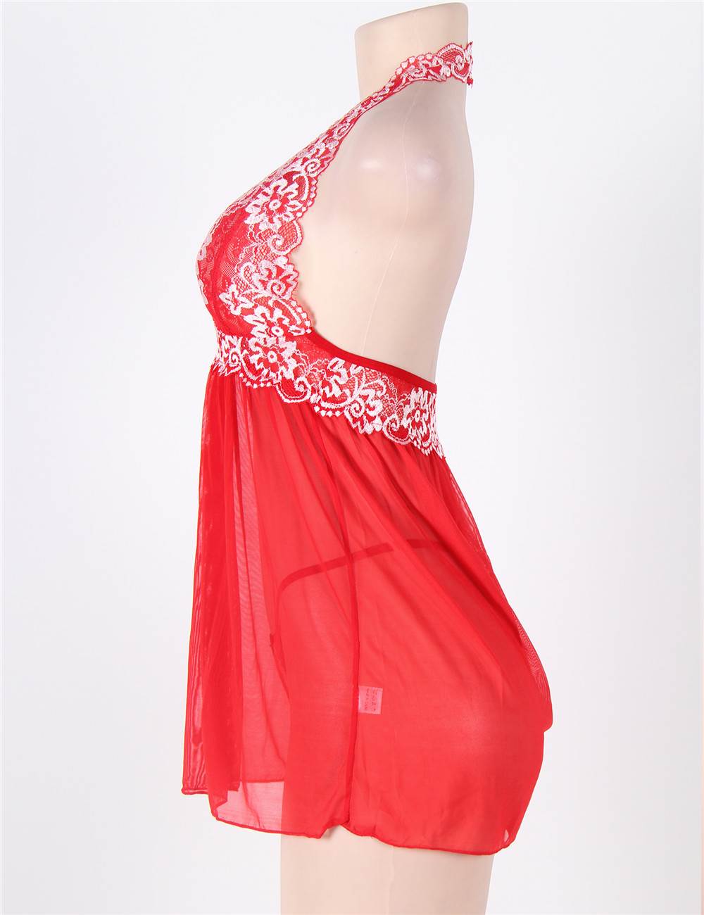 Home > Wholesale Plus Size Lingerie > Red Halter Floral Plus Size Babydoll With G-String