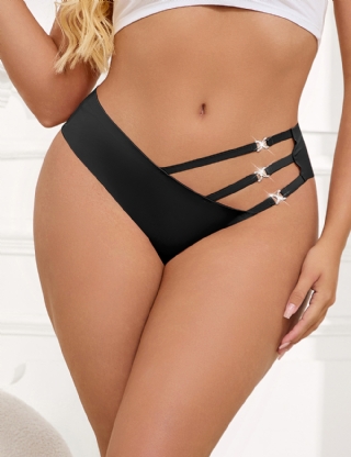 1. Ice silk fabric, soft and comfortable; 2. Waistband side spliced with multiple decorative rings, hollow design, unique personality; 3. Adhesive process.