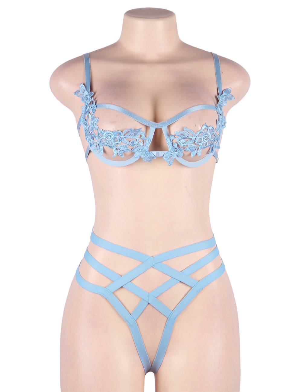 Product Name Blue Elegant Embroidery Fashion Bra Set With Underwire